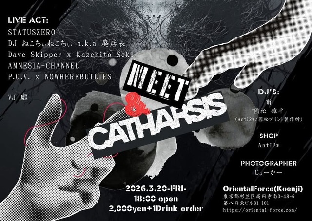 こちらの出展は無事終了いたしました。 ご来場いただきました皆様、本当にどうもありがとうございました。 2026年3月20日(金 / 祝) 【会場】 高円寺ORIENTAL FORCE (HP : https://lit.link/orientalforce ) 【料金】 ¥2000+1drink OPEN / 18:00 【LIVE】 STATUSZERO DJ ねこちぃねこちぃ a.k.a 廃店長 Dave Skipper x Kazehito Seki AMNESIA-CHANNEL P.O.V. x NOWHEREBUTLIES 【DJ's】 甫 國松 雄平(Anti2*/國松プリント製作所) 【VJ】 虚-UTSURO- 【PHOTOGRAPHR】 じょーかー 【SHOP】 Anti2* 【注意】 当イベントは会場のキャパシティの関係上、入場者数には限りがございます。 状況に応じて都度アナウンスをさせていただく場合がございますので、予めご了承いただきたく存じます。 infoは各出演者のアカウントの他、下記Xアカウントでも承っております。 Prostlume : ( @prostlume_PR ) 國松プリント製作所 : ( @Kuni_Bastard )