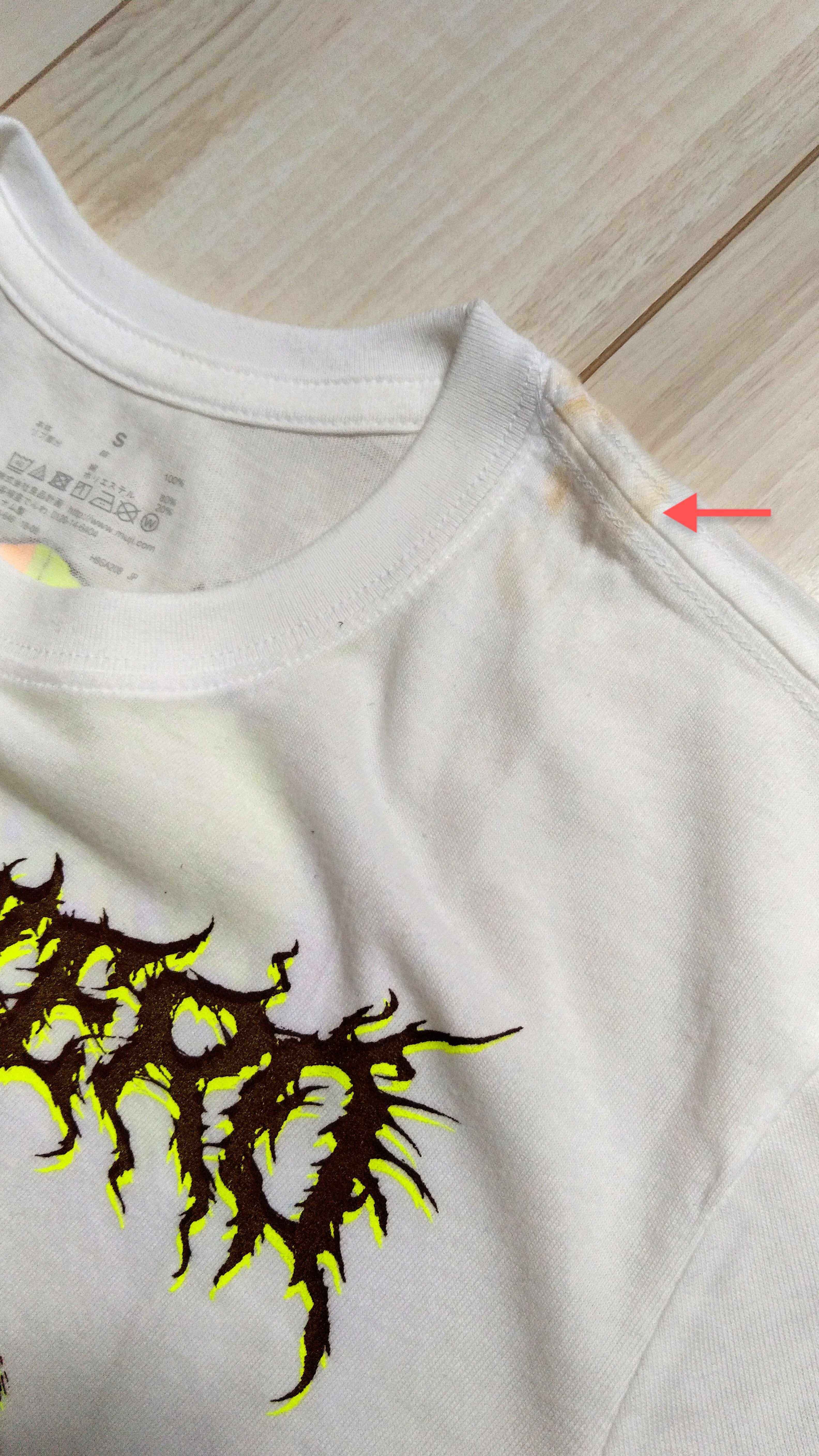 ・平置き画像の状態、右上部~襟ぐりにかけてシミ有。